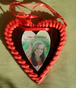 Wie wäre es mit einem Kuchenbild auf einem Lebkuchenherz ?